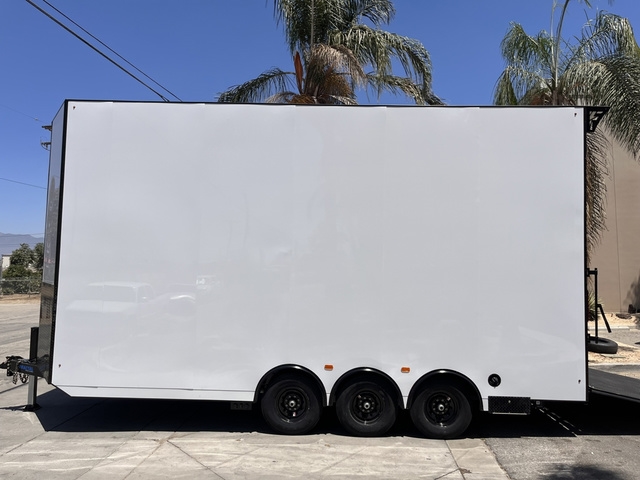 BRAND NEW FACTORY DIRECT 2026 FRACTAL STACKERS STARTING AT $34,995 8.5 X 22 X 13'6" STACKER ENCLOSED EXTERIOR OPTIONS .080 POLYCORE SCREWLESS SIDING TRIPLE 7K AXLES (BRAKES ON ALL AXLES) 15,000 LB HYDRAULIC TONGUE JACK 30" BULLNOSE FRONT END ADJUSTABLE COUPLER CABLE FREE REAR RAMP DOOR (97" WIDE) FRACTAL RACE PACKAGE (FENDER FLARES/DROP SIDES/ REAR WING) 3' RV DOOR WITH DROP STEP (2) EXTERIOR FLOODLIGHTS 40 GAL FUEL STATION 70 GAL WATER TANK 16 PLY TIRES INTERIOR OPTIONS 16' BELLY LIFT UPPER LOFT WORKBENCH SEALED UNDERBELLY MESH 3/4 PLYWOOD FLOOR RUBBER COIN FLOORING 1/4 BIRCH SIDE WALLS (4) INTERIOR LIGHTS DRIVE OVER FENDERS (6) FLUSH MOUNT D RINGS IN FLOOR BATTERY STORAGE THESE TRAILERS ARE BUILT LOCALLY IN BLOOMINGTON CA 2751 S LILAC AVE BLOOMINGTON CA 92316 (909)313-4216 CUSTOM BUILT TRAILERS SIMPLY THE BEST.