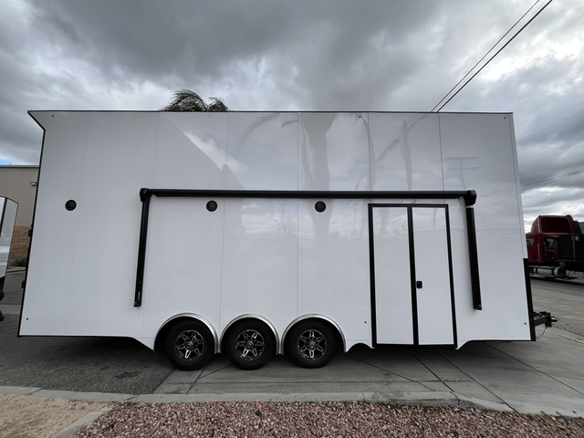 BRAND NEW 2026 FACTORY DIRECT 810 X 26 X 13'5" FRACTAL ENCLOSED STACKER 106" WIDE SEALED UNDERBELLY MESH FLUSH MOUNT D RINGS .080 POLYCORE SIDING (SCREWLESS) 16' BELLY LIFT TRIPLE 7,000 LB AXLES ALL ELECTRIC BRAKES (DEXTER) HD 15,000 LB HYDRAULIC TONGUE JACK 30" VNOSE FRONT END REAR WING DROP SIDES FENDER SKIRTS CABLE FREE REAR RAMP DOOR 102" WIDE X 91" TALL (RATED AT 5,000 LBS) HD ADJUSTABLE COUPLER 48" X 84" SPLIT RV DOOR DROP STEP STEEL DIAMOND PLATE DECK UPPER LOFT .080 POLYCORE ALUMINUM INTERIOR IN FLOOR COMPARTMENT STORAGE 18' POWER AWNING 16" ALUMINUM WHEELS (8 LUG) 14 PLY TIRES DRIVE OVER FENDERS INTERIOR AND EXTERIOR LED LIGHTING PACKAGE TRAILER WIRED TO STANDARED SAE DIAGRAM W/ ROUND 7 WAY CONNECTION, 2 YEAR LIMITED FACTORY WARRANTY INCLUDED AT NO EXTRA COST! "SEE WEBSITE FOR LIMITATIONS" THESE UNITS ARE BUILT TO ORDER, CUSTOM MADE HERE IN BLOOMINGTON CA DELIVERY AVAILABLE FINANCING AVAILABLE DIFFERENT OPTIONS AVAILABLE GIVE US A CALL NOW TO GET YOUR TRAILER BUILD STARTED TODAY (909)313-4216 SIMPLY THE BEST TRAILER 2751 S LILAC AVE BLOOMINGTON CA 92316