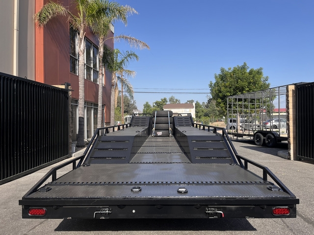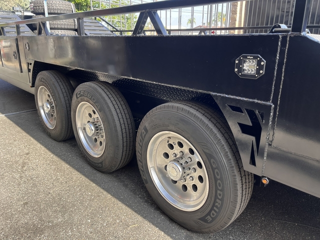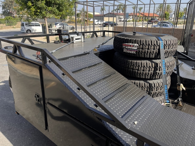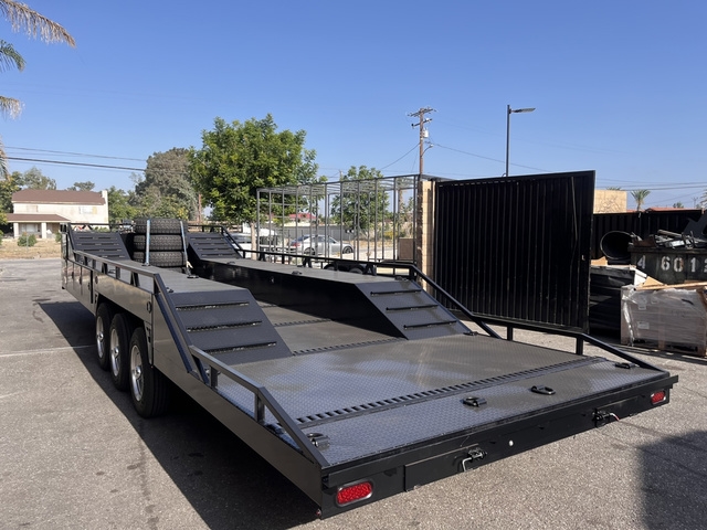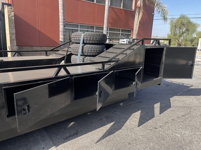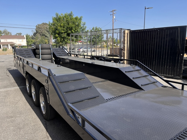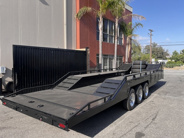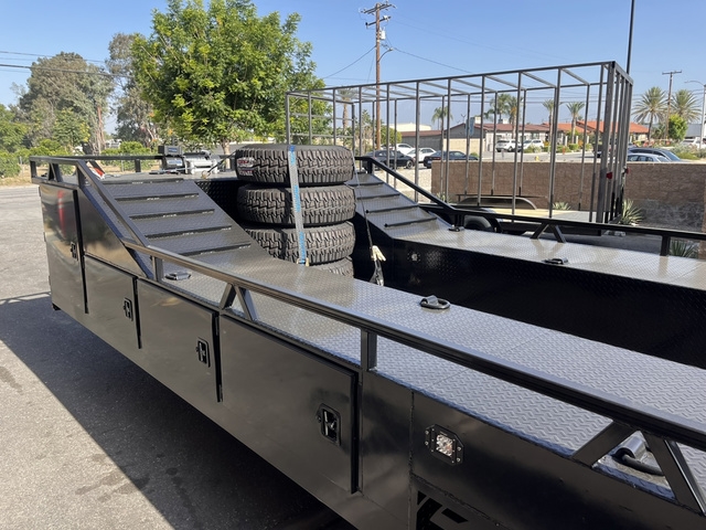 BRAND NEW FACTORY DIRECT 8.5 X 30 BOXED DECK BAJA TRAILER * TRIPLE 7K AXLES (BRAKES ALL AROUND) * (8) LUG ALUMINUM WHEELS * 18 PLY TIRES * HD 12K DROPLEG TONGUE JACK * LED LIGHTS ALL AROUND * FLOOD AND DECK LIGHTS * LARGE ALUMINUM TOOL BOX * FRONT TIRE HOLDERS ON DECK * DUAL MOUNT SPARE TIRES UPFRONT * (6) COMPARTMENTS ON EACH SIDE * ADJUSTABLE COUPLER 2 5/16 * (20) HEAVY DUTY D RINGS * DIAMOND PLATE DECK * REAR 6' HEAVY DUTY RAMPS WITH STORAGE THESE UNITS ARE BUILT TO ORDER, CUSTOM MADE HERE IN BLOOMINGTON CA DELIVERY AVAILABLE FINANCING AVAILABLE DIFFERENT OPTIONS AVAILABLE GIVE US A CALL NOW TO GET YOUR TRAILER BUILD STARTED TODAY (909)313-4216 SIMPLY THE BEST TRAILER 2751 S LILAC AVE BLOOMINGTON CA 92316
