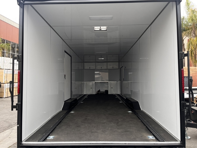 BRAND NEW FACTORY DIRECT 106" WIDE 28' LONG 8' TALL ENCLOSED CAR HAULER .080 POLYCORE EXTERIOR SIDING (SCREWLESS) .080 POLYCORE INTERIOR FINISH FRONT UPPER CABINETS FRONT LOWER WORKBENCH WITH CABINETS 12K WINCH INSTALLED DUAL 7,000 LB AXLES ELECTRIC BRAKES (DEXTER) SEALED DARKO UNDERBELLY MESH 2' VNOSE FRONT RUBBER COIN FLOORING DRIVE OVER FENDERS 84" IN BETWEEN FENDERS HD CABLELESS REAR RAMP DOOR (RATED FOR 5000 LBS) UPGRADED RADIAL TIRES 48" RV SIDE DOOR INTERIOR DOME LIGHTS 12 HD D-RING TIE-DOWNS THAT BOLT TO FRAME EXTERIOR LED LIGHTS HD WRAP AROUND TONGUE HD 7K DROP LEG TONGUE JACK HD SAFETY CHAINS WITH BRAKE AWAY SAFETY KIT TRAILER WIRED TO STANDARED SAE DIAGRAM W/ ROUND 7 WAY CONNECTION, 3/4" CABINATE GRADE FLOOR WITH FINISHED 1/4" INTERIOR BIRCH WALLS 2 YEAR LIMITED FACTORY WARRANTY INCLUDED AT NO EXTRA COST! "SEE WEBSITE FOR LIMITATIONS" THESE UNITS ARE BUILT TO ORDER, CUSTOM MADE HERE IN BLOOMINGTON CA DELIVERY AVAILABLE FINANCING AVAILABLE DIFFERENT OPTIONS AVAILABLE GIVE US A CALL NOW TO GET YOUR TRAILER BUILD STARTED TODAY (909)313-4216 SIMPLY THE BEST TRAILER 2751 S LILAC AVE BLOOMINGTON CA 92316