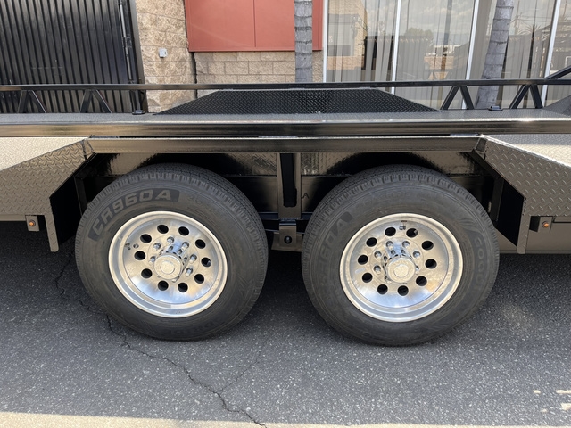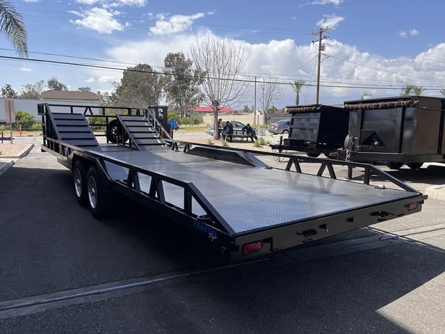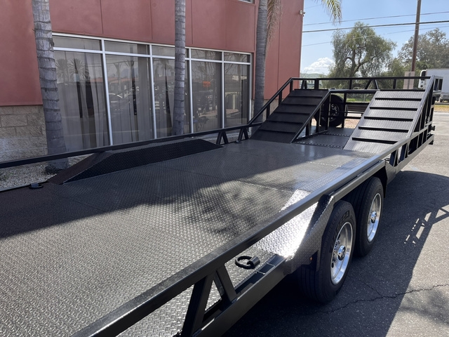 NEW FACTORY DIRECT 2026 8.5 X 28 FULL DECK CAR HAULER/ BUGGY DRIVE OVER DUAL 8000LBS AXLES (DUAL ELECTRIC BRAKES) 17.5" ALUMINUM WHEELS 18 PLY HD 12K TONGUE JACK HD FULL WRAP AROUND TONGUE FULL 8.5 WIDE DECK WITH DRIVE OVER FENDERS RADIAL TIRES HD SAFTEY CHAINS WITH BRAKE AWAY KIT LED LIGHTS ALL AROUND 6 HD CHANNEL RAMPS WITH REAR STORAGE WINCH PLATE/ BATTERY PLATE DIAMOND PLATE TONGUE WITH LARGE TOOL BOX E-TRACK DUAL MOUNTED TIRE RACK DEEP CYCLE MARINE BATTERY DIFFERENT SIZE TRAILERS AVAILABLE *2 YEAR LIMTED FACTORY WARRANTY INCLUDED AT NO EXTRA COST!!! ***FINANCING IS AVAILABLE. PLEASE SEND US A MESSAGE IF YOU HAVE QUESTIONS WE WOULD BE HAPPY TO HELP! LOCATED AT 2751 S LILAC AVE BLOOMINGTON CA
