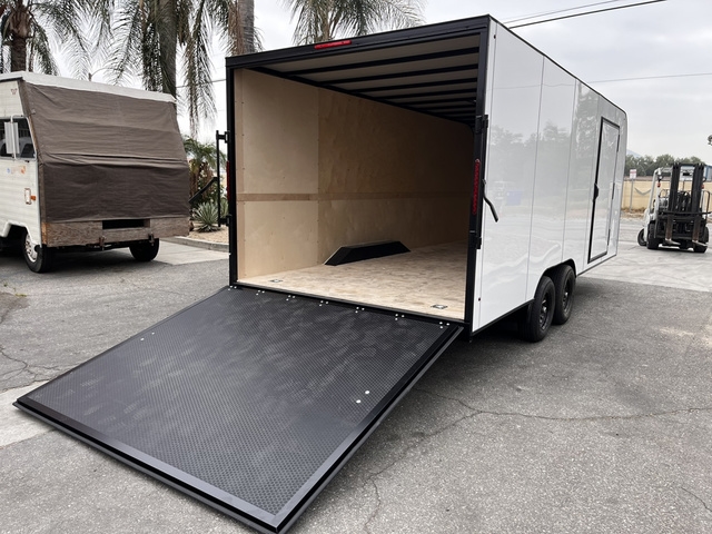 BRAND NEW FACTORY DIRECT 102" WIDE 20' LONG 7' TALL ENCLOSED CAR HAULER .080 POLYCORE EXTERIOR SIDING (SCREWLESS) DUAL 6000 LB AXLES WITH DUAL ELECTRIC BRAKES (DEXTER) SEALED DARKO UNDERBELLY MESH 83" IN BETWEEN FENDERS HD CABLELESS REAR RAMP DOOR (RATED FOR 5000 LBS) UPGRADED RADIAL TIRES 48" SIDE DOOR WITH HD BAR LATCH INTERIOR DOME LIGHT 4 HD D-RING TIE-DOWNS THAT BOLT TO FRAME EXTERIOR LED LIGHTS HD WRAP AROUND TONGUE HD 7K DROP LEG TONGUE JACK HD SAFETY CHAINS WITH BRAKE AWAY SAFETY KIT TRAILER WIRED TO STANDARED SAE DIAGRAM W/ ROUND 7 WAY CONNECTION, 3/4" CABINIET GRADE FLOOR WITH FINISHED 1/4" INTERIOR BIRCH WALLS 2 YEAR LIMITED FACTORY WARRANTY INCLUDED AT NO EXTRA COST! "SEE WEBSITE FOR LIMITATIONS" THESE UNITS ARE BUILT TO ORDER, CUSTOM MADE HERE IN BLOOMINGTON CA DELIVERY AVAILABLE FINANCING AVAILABLE DIFFERENT OPTIONS AVAILABLE GIVE US A CALL NOW TO GET YOUR TRAILER BUILD STARTED TODAY (909)313-4216 SIMPLY THE BEST TRAILER 2751 S LILAC AVE BLOOMINGTON CA 92316