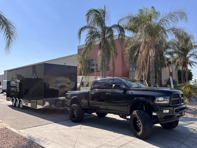 BRAND NEW FACTORY DIRECT 26' ENCLOSED TRAILER 106 X 26 X 9 EXTERIOR OPTIONS - .080 POLYCORE SIDING (SCREWLESS) MIRROR BLACK - CABLE FREE REAR RAMP DOOR (102" WIDE) CHROME - FENDER SKIRTS - DROP SIDES - 40 GAL FUEL STATION - 50 GAL WATER STATION - ALUMINUM WHEELS - 12 PLY TIRES - EXTERIOR FLOODLIGHTS - ELECTRIC TONGUE JACK - TONGUE BOX INTERIOR OPTIONS - .080 POLYCORE INTERIOR - DRIVE OVER FENDERS - RUBBER COIN FLOORING - WINCH ASSIST RAMP DOOR - INTERIOR DOMELIGHT LEDS - 110 ELECTRIC PACKAGE - FRONT WORKBENCH - UPPER CABINETS - LOFT THESE TRAILERS ARE BUILT TO ORDER FACTORY ADDRESS: 2751 S LILAC AVE BLOOMINGTON CA WE DELIVER!! BRAND NEW TRAILERS WITH WARRANTY BEST VALUE TRAILERS SIMPLY THE BEST