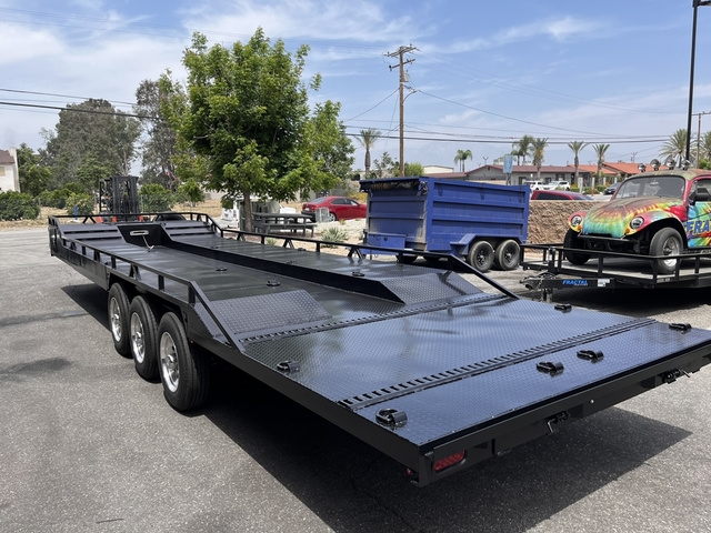 BRAND NEW FACTORY DIRECT 32' BAJA-LITE TRAILER 8.5 X 32 EQUIPMENT - TRIPLE 7,000LB DEXTER AXLES (BRAKES ALL-AROUND) - 17.5" ALUMINUM WHEELS - 18 PLY TIRES - DRIVE OVER FENDERS - 6' REAR HD RAMPS WITH STORAGE - FRONT PASS-THROUGH COMPARTMENT - FRONT DIAMOND PLATE TOOL BOX - 12K DROP LEG TONGUE JACK - ADJUSTABLE COUPLER - 5K WINCH INSTALLED THESE TRAILERS ARE CUSTOM BUILT IN BLOOMINGTON CA 2751 S LILAC AVE BLOOMINGTON CA 92316 BUILT TO ORDER CUSTOM TRAILERS (909)313-4216 SIMPLY THE BEST.